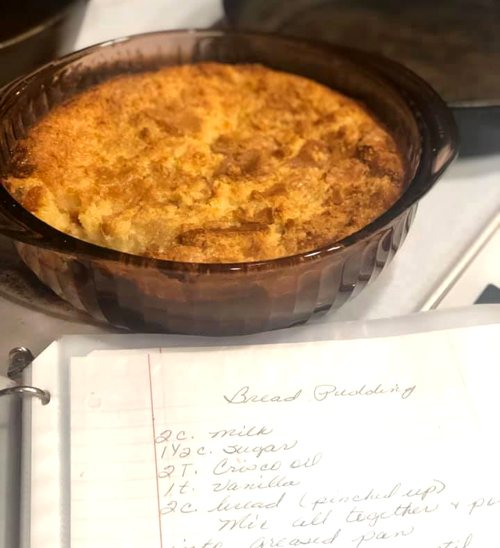 One dessert she made combined stale bread, milk, eggs or oil, sugar and a little vanilla flavoring. It was an old time recipe handed down by her mom. It was making sure nothing went to waste. It was comfort and love and warmth. It was delicious.